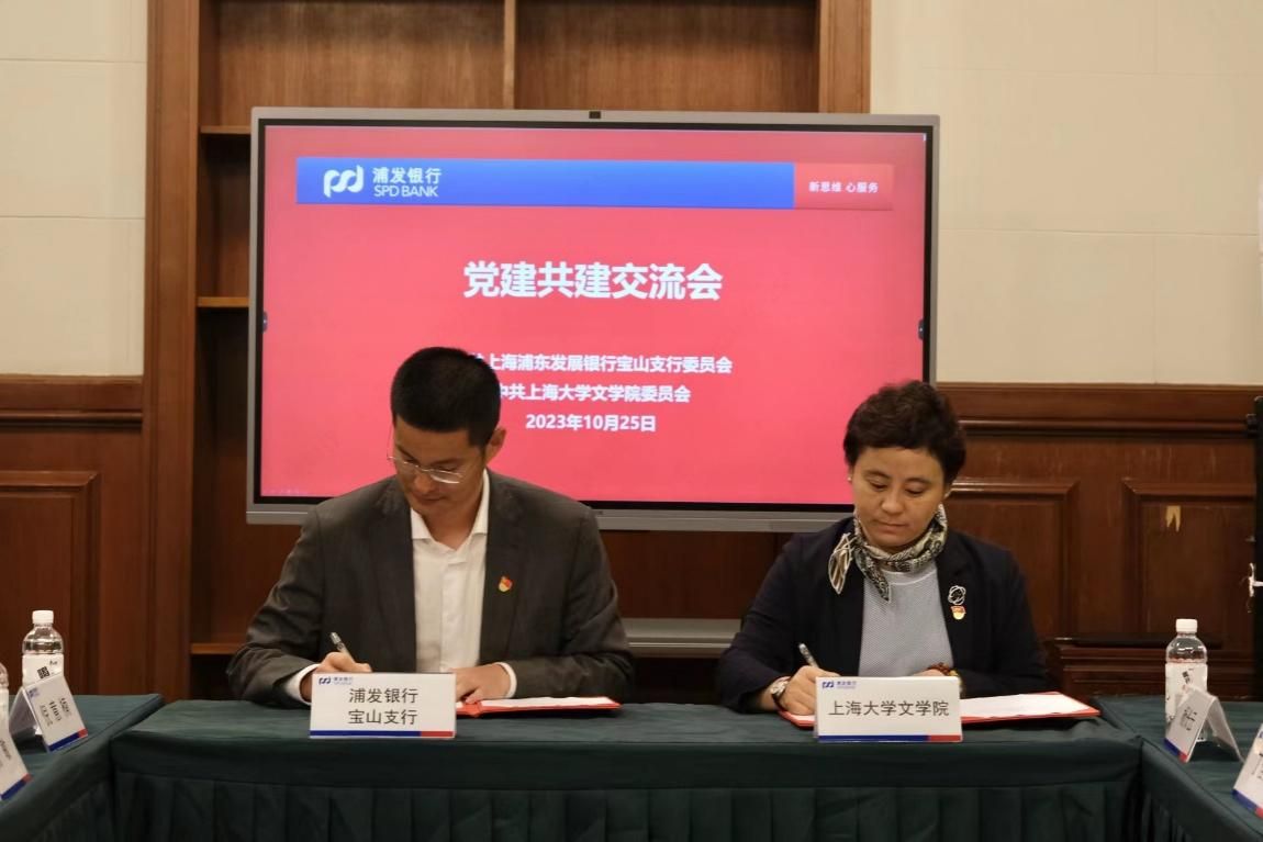 10月25日下午,文学院党委与上海浦东发展银行宝山支行党委在浦发银行总行举行了党建共建协议签约仪式。出席本次签约仪式的有上海分行人力资源部副总经理张云,宝山支行党委书记、行长臧渊,纪委书记、副行长林雯雯,党委委员、副行长俞敏,党委委员、副行长祁霏,党委委员、见习行长倪意楠,党支部委员、办公室主任金帆,锦秋路支行行长韩依嘉,党务专员顾丽萍,公司客户经理谢孝忍,公司客户经理李博铭;上海大学特聘教授、上海国企党建研究中心执行秘书长苏虹,文学院党委书记陆甦颖,党委副书记、院长刘旭光,党委副书记、副院长丁佳蒙,副院长倪兰、挂职副院长杨长云、中文系主任张永禄、文化研究系党支部书记朱善杰、院办党支部书记周薇、党委组织员赵影、团委书记宋亚丽,双方就党建共建合作进行深入交流后举行了签约仪式。