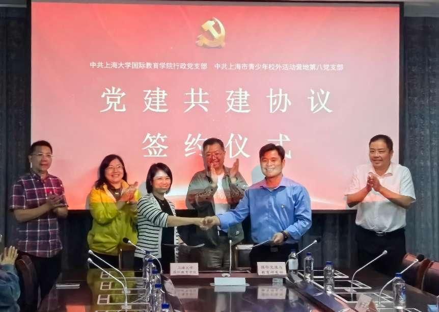 活动最后,双方领导和支部书记签署了党支部结对共建协议,全体与会人员合影留念。上海大学国际教育学院行政党支部与上海市青少年校外活动营地第八党支部将以此次共建为契机,以务实笃行、凝心聚力的态度,积极开展多方位合作,实现资源共享,搭建全球视野平台,促进中外交流融合。