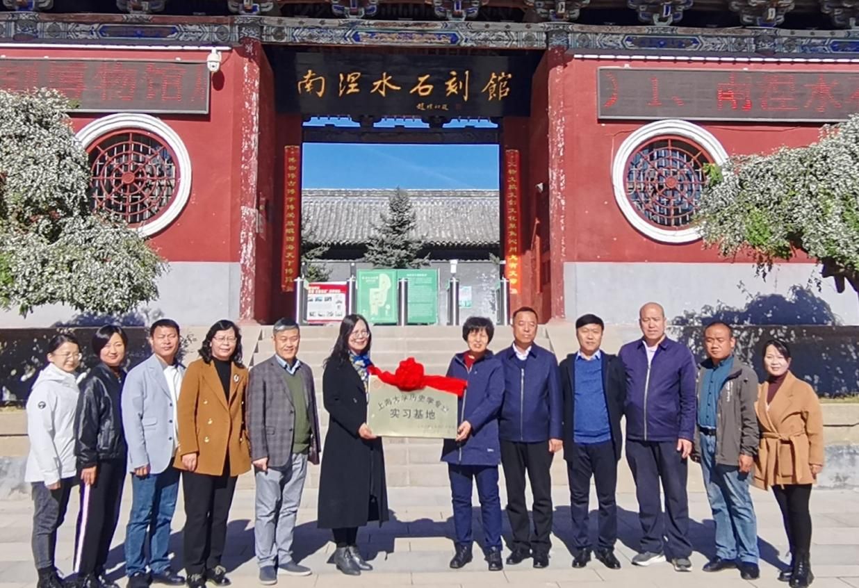11月7日,上海大学文学院副院长宁镇疆、杨长云,历史学系主任郭丹彤,历史学系陈菊霞教授、黄薇博士和文学院科研秘书杨丹阳在山西省沁县南涅水石刻馆参观考察,并与南涅水石刻馆签订“上海大学历史学专业实习基地”合作协议。沁县县委常委、组织部长、统战部长焦会丽,沁县人民政府副县长王丽萍,沁县文旅中心主任、沁县南涅水石刻博物馆馆长申虎峰,沁县南涅水石刻博物馆陈展部主任、副研究馆员曹雪霞等出席了签约挂牌仪式。