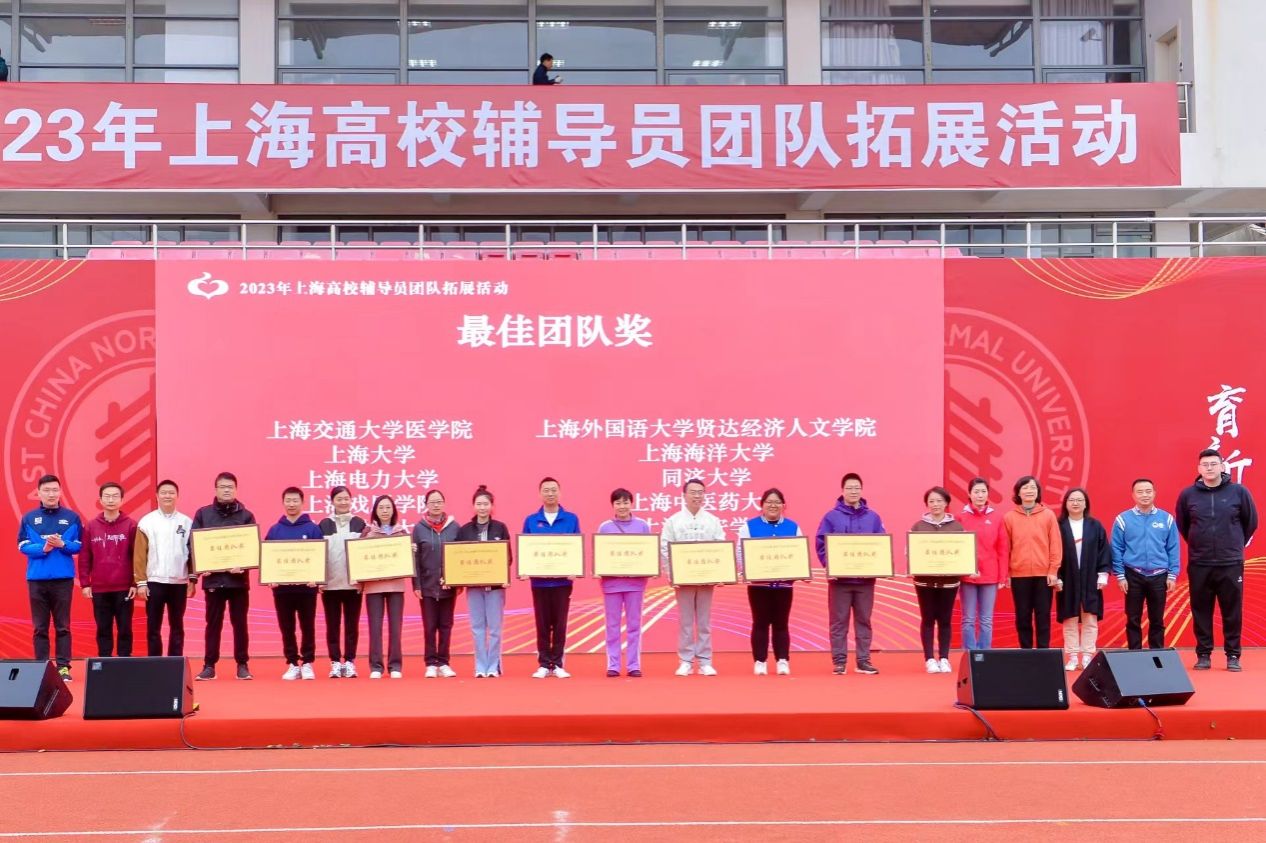 11月11日,由中共上海市教育卫生工作委员会、上海市教育委员会主办,华东师范大学承办的2023年上海高校辅导员团队拓展活动在华东师范大学闵行校区举行,我校辅导员代表队在校党委副书记欧阳华的带领下,与上海市50余所兄弟高校的辅导员代表队同场角逐,通过激烈的比拼,上海大学代表队获得最佳团队奖。