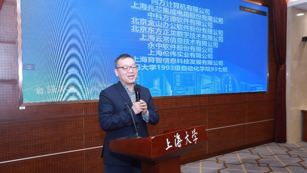 中科方德软件有限公司副总裁杜栓柱介绍中科方德公司概况、重点保障案例,桌面操作系统及教育行业解决方案:教、学、管、考、评,表示中科方德作为软件提供方融入到信创计算机多媒体实验室,希望有更多的机会支撑上海大学的课程体系建设。