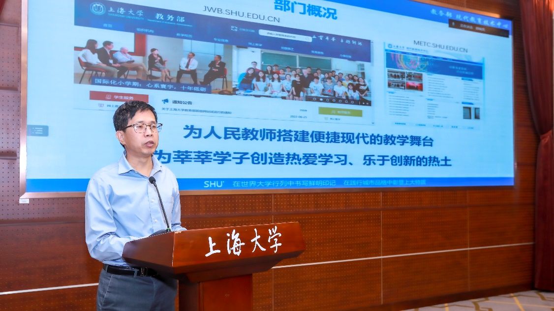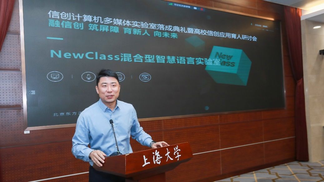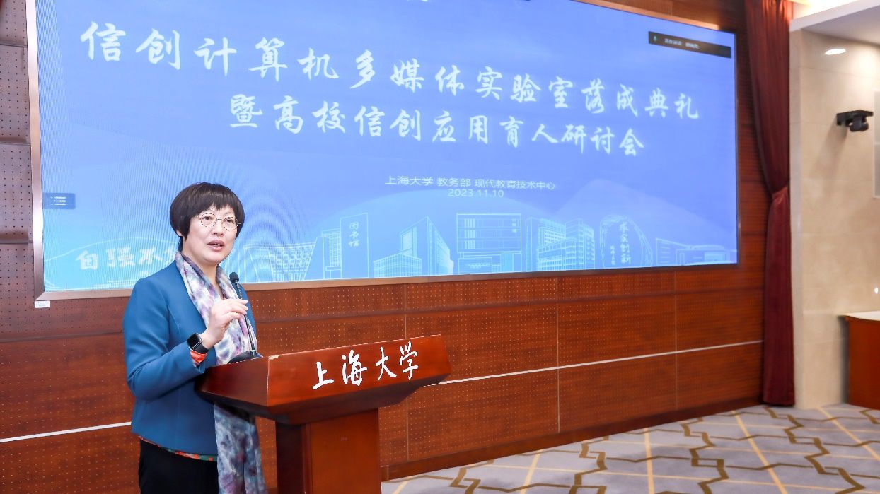 11月10日,上海大学教务部现代教育技术中心(简称现教中心)举办“信创计算机多媒体实验室落成典礼暨高校信创应用育人研讨会”。上海市教委代表、上海大学相关部处领导、信创相关企业代表及上海兄弟高校相关领导出席会议。
