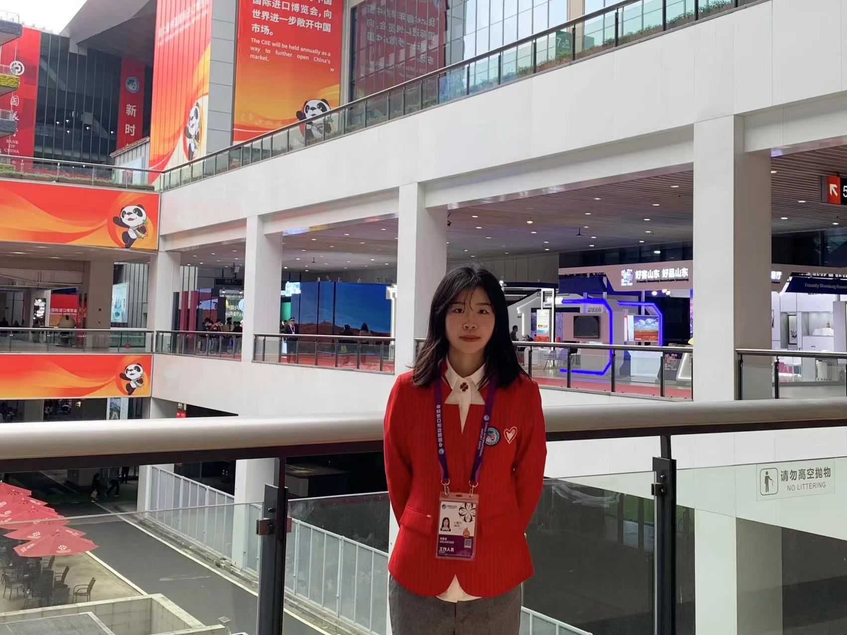 在进博会期间,我作为国家展上海大学志愿者联络员,主要负责国家展上海大学志愿者的协调对接,以及与各国别展台人员的沟通交流等工作。