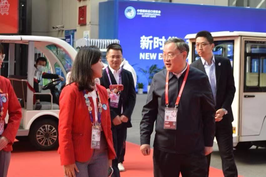 时间拉到进博开幕当天,协调电瓶车使用、提前联系场馆馆长迎接交易团、预约展台负责人讲解……一切工作忙碌但是有条不紊地推进,最终圆满完成任务,这是所有内宾接待组共同努力的结果。