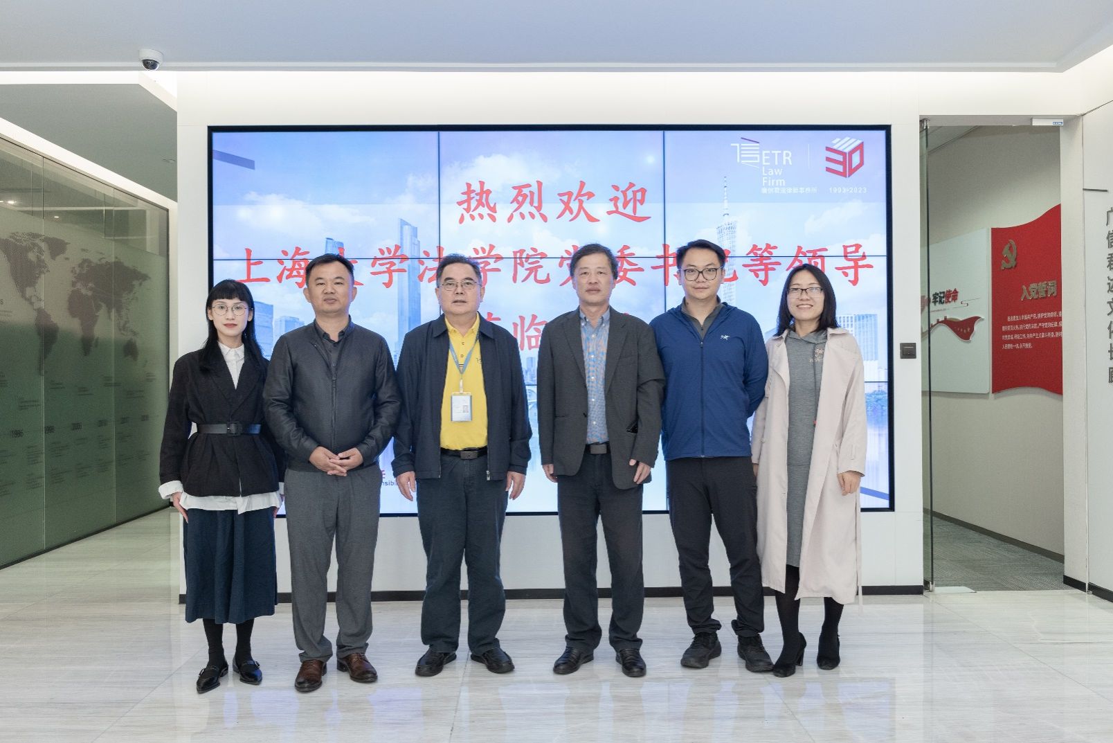 为强化广州校友与母校的情感联系,11月16日上午,徐国明书记、袁曾副院长、江晓双主任走访了广东广信君达律师事务所总部,看望了法学院2008级法律硕士李正刚律师校友。在广东省政协常委、律所主任王晓华律师和校友李正刚律师的陪同下,徐国明书记一行参观了律所的办公场所以及律所历史沿革、文化建设、党建工作、制度建设等展示,深入了解了广信君达律师事务所30年的发展历程和取得的成绩,并与王晓华主任座谈交流,双方初步达成了下一步合作意向。