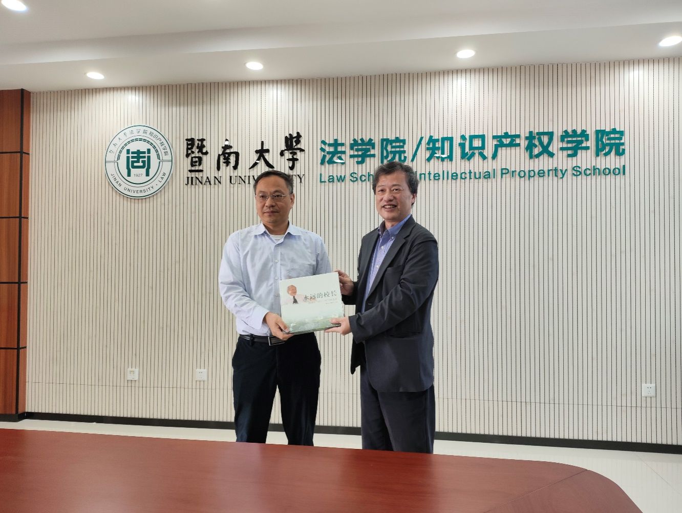 最后,上海大学法学院向暨南大学法学院/知识产权学院赠送了《永远的校长-钱伟长1983-2010画传》书籍。