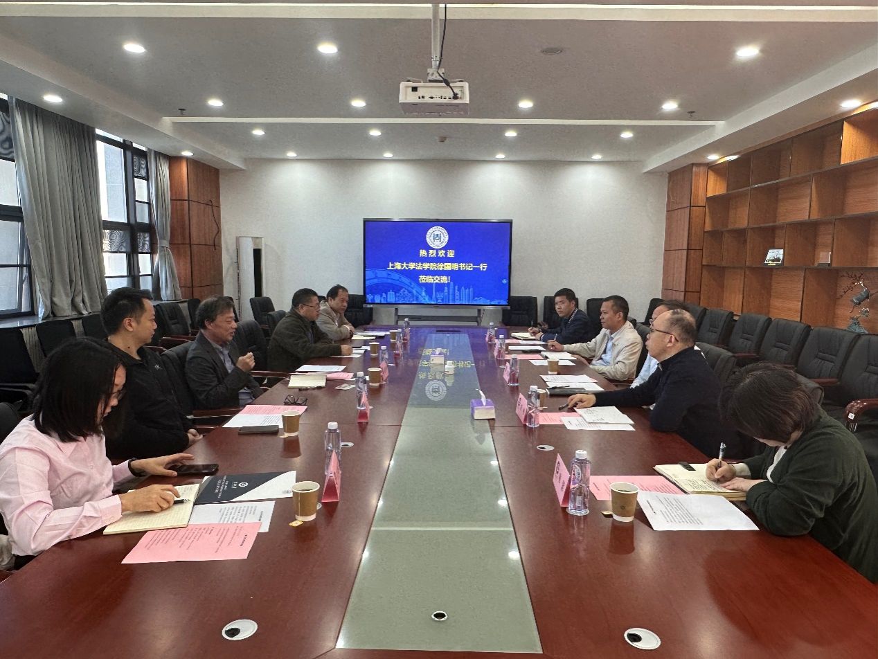 11月17日上午,法学院党委书记徐国明、申报博士点工作专班主任李清伟、学术分委员会主任兰跃军、副院长袁曾和办公室主任江晓双一行赴暨南大学法学院/知识产权学院调研。暨南大学法学院/知识产权学院党委书记黄建新、副院长李响、党委副书记李勇标、研究生管理办公室主任喻慧、学生党总支副书记梁森热情接待并在暨南大学番禺校区知识产权大楼709会议室与上大法学院一行座谈交流。