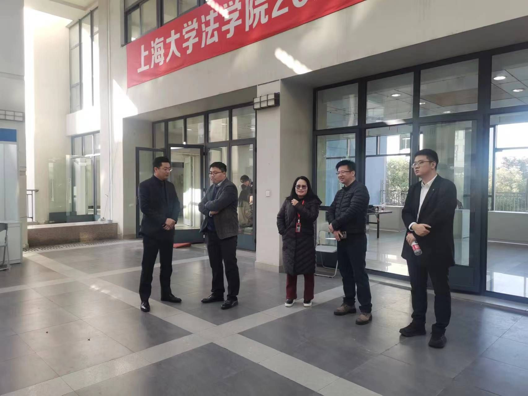 上海大学法学院党委副书记、副院长于伟以及辅导员林建玲、杨晓彤、王琦也来到招聘会现场,认真了解同学们求职面试情况。