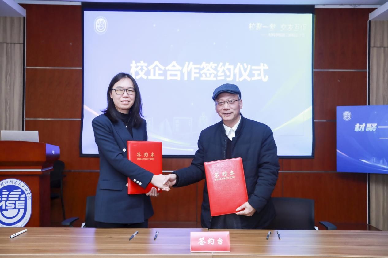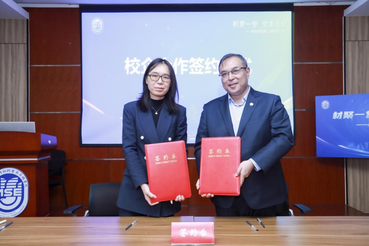 随后,上海大学材料科学与工程学院与上海戴迪老年健康产业发展促进中心有限公司、默利卡高分子材料(上海)有限公司、衢州晶哲电子材料有限公司、宁波银行股份有限公司上海黄浦支行、上海市元琪科技发展有限公司 、正阳电子有限公司、上海六晶科技股份有限公司、上海华力微电子有限公司、上海吉晨卫生后勤服务管理有限公司、上海日之升科技有限公司、上海晋拓科技股份有限公司、上海专利商标事务所有限公司等共同签署校企合作协议,互利互惠,协同并进,共创美好未来。
