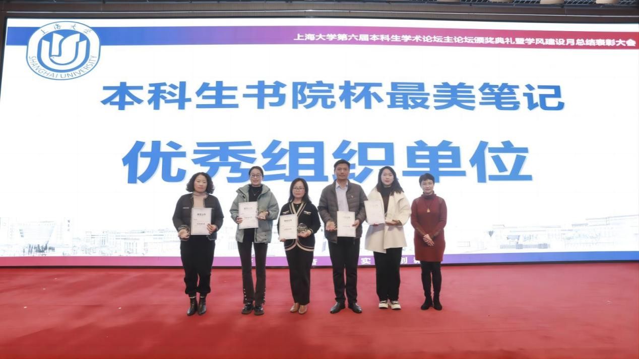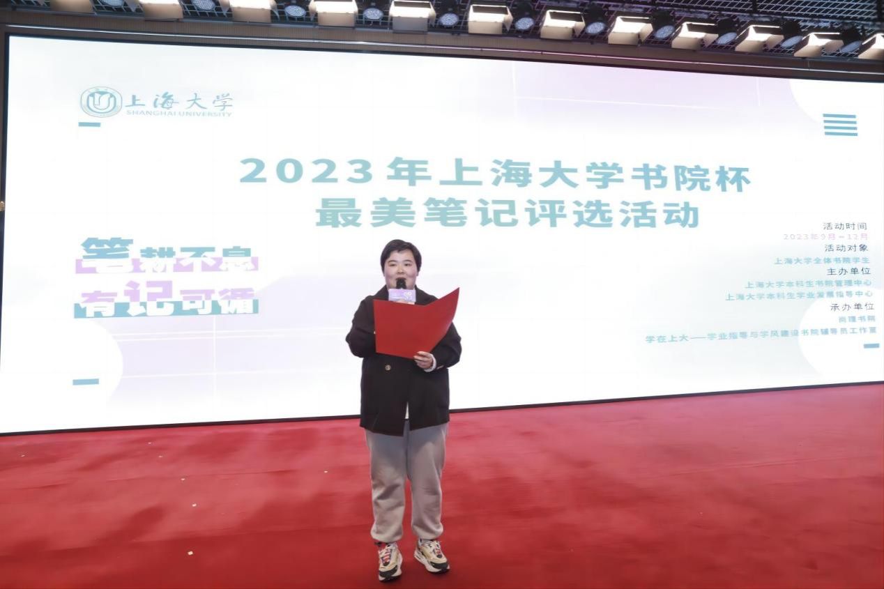表彰大会上还进行了“笔耕不息 有记可循”2023年上海大学书院杯最美笔记活动颁奖,法学院本科生马欣怡同学获得活动一等奖并作为获奖代表发言,秋白书院荣获“2023年上海大学书院杯最美笔记优秀组织奖”。