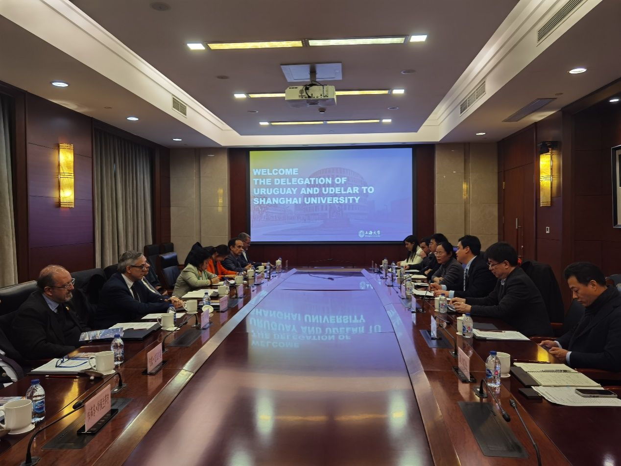 12月12日,上海大学党委副书记、副校长胡大伟会见了来访的乌拉圭共和国大学校长阿里姆(RodrigoArim)一行。