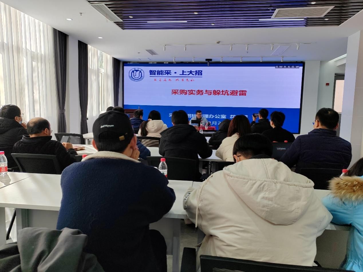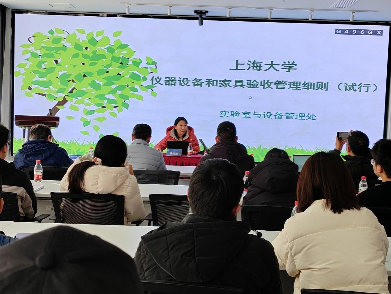 校采购与招标管理办公室主管花永盛,实验室与设备处杨秀丽,家具科科长胡跃华为老师们进行专题培训。花永盛从学校采购管理规定、重点环节管理、采购风险及防控等方面,并结合招标采购领域典型案例进行了宣讲和解读。深入分析了招标采购领域风险及具体表现形式,就如何加强廉洁风险防控、提高采购质效提出意见建议。杨秀丽围绕《上海大学仪器设备和家具验收管理细则(试行)》《上海大学仪器设备维修维护管理细则(试行)》2份文件深入详细分析了校仪器设备、家具验收、仪器设备维修需注意的风险防范点,并结合具体案例对重点难点热点问题进行了深入解析。胡跃华就设备维修注意事项与老师们进行了沟通交流。