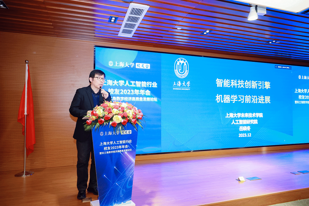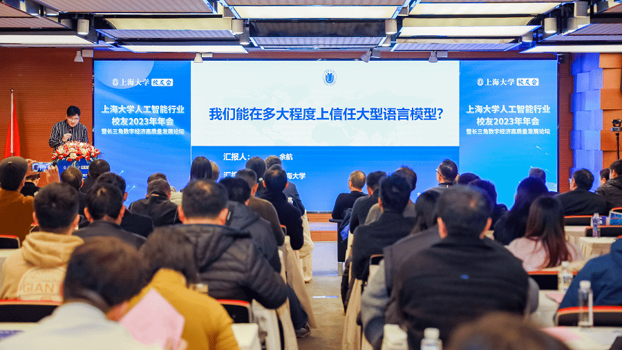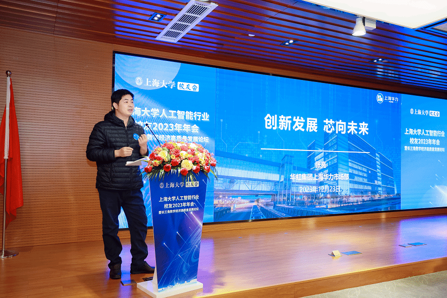12月23日下午,上海大学人工智能行业校友2023年年会暨长三角数字经济高质量发展论坛在青浦区校友企业移动智地会议中心召开。青浦区人民政府副区长张彦,上海大学党委副书记、副校长胡大伟,上海大学校友会副会长、锐嘉科投资控股有限公司创始人、总裁王迅,上海大学校友会副会长、上海联创投资管理有限公司董事长周水文,郑州大学网络空间安全学院院长胡传平校友,外联处处长、校友会秘书长陈然,计算机科学与工程学院党委书记朱宏涛,青浦区发展和改革委员会副主任柏培峰,青浦区经济委员会副主任陆杨,青浦工业园区发展集团副总经理李军以及近百位来自人工智能行业校友代表、上海大学师生代表出席会议。