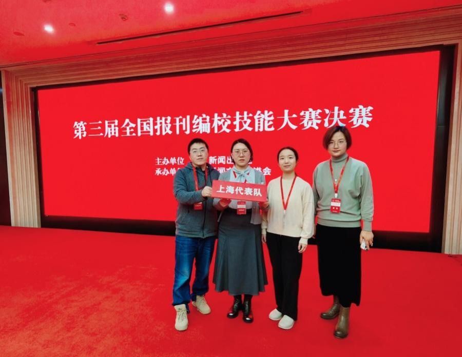 12月25日,由国家新闻出版署主办、中国新闻文化促进会承办的第三届全国报刊编校技能大赛决赛在京举行。共36支代表队参加决赛,经过激烈角逐,由新民晚报社刘艳青、上海教育出版社高铭婉、文汇报社赵鑫、上海大学期刊社冯莹莹组成的上海代表队以优异成绩喜获全国一等奖。
