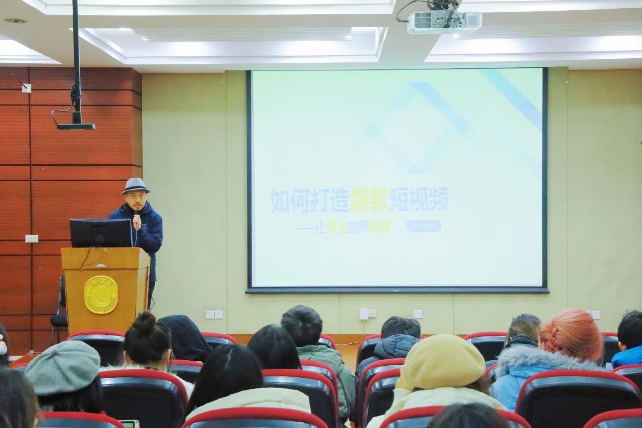 近日,由新闻传播学院主办,“青言青语”网络育人书院辅导员工作室承办的“思源大讲坛”在上海大学宝山校区东区经管楼101室顺利举行。本次活动邀请了上海广播电视台融媒体中心创意总监、新闻传播学院新闻传播系04届校友徐晓,为大家带来《“如何打造爆款中短视频?让专业加持网感”》主题讲座。讲座由新闻传播学院党委副书记、副院长王智君主持。