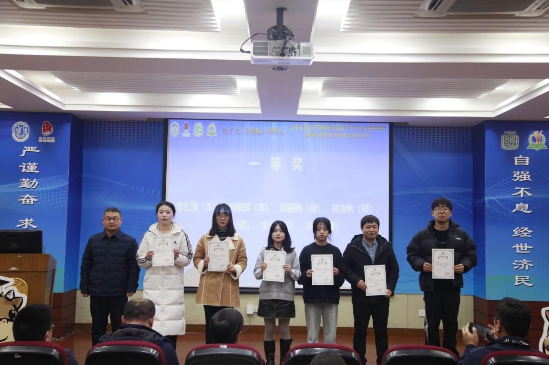 经济学院产经中心副主任谭静为荣获三等奖的同学们颁奖。