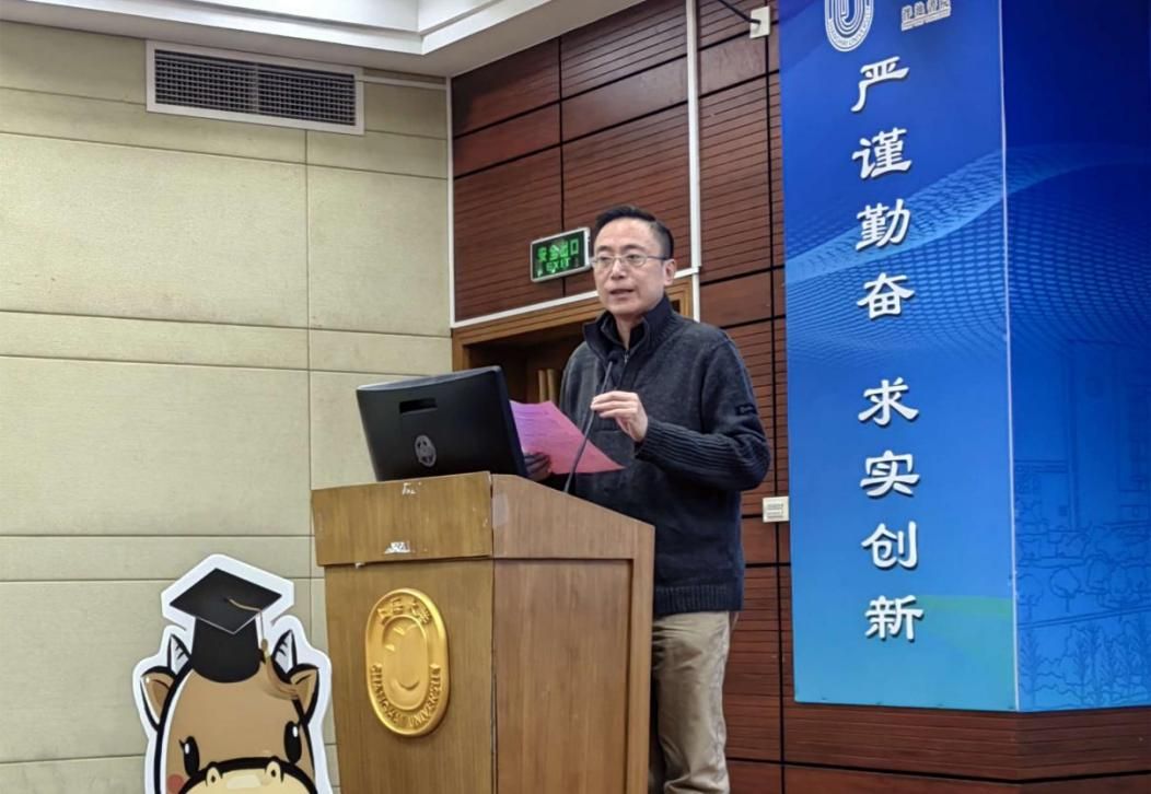 紧随宣誓的是经济学院近年来创新人才培养工作回顾,党委书记孟添从以赛促学鼓励学以致用、调动朋辈力量营造优良学风、发挥导师作用,加强产教融合三个方面回顾了近年来学院致力于培养全面发展的卓越经济人才的努力。