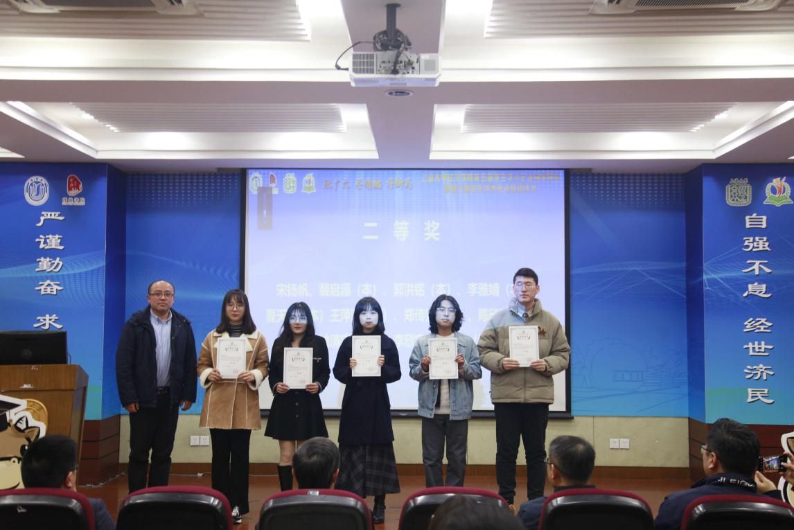 学术年会组委会主席沈瑶教授对第五届学生学术年会评审情况做了详细的介绍。参赛论文经过组委会收集、查重、初评打分推荐、修改、查重、复评打分推荐、结果汇总、评奖公示八个环节开展。每篇论文在初评、复评环节,均有三位评审团教师对其推荐、打分或排序,确保各个环节的公平、公正、公开。最终共计产生一等奖7项、二等奖9项、三等奖10项,优胜奖14项。