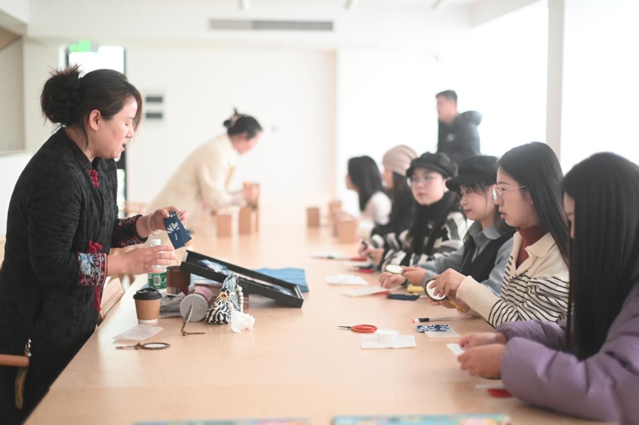 开幕式活动之后,还在美术馆二楼组织了艺术沙龙活动,由上海美术学院艺术家、少数民族学生、上海美术学院学生、浦东非遗传承人等参加,亲自动手制作了多种非遗传承的工艺品。