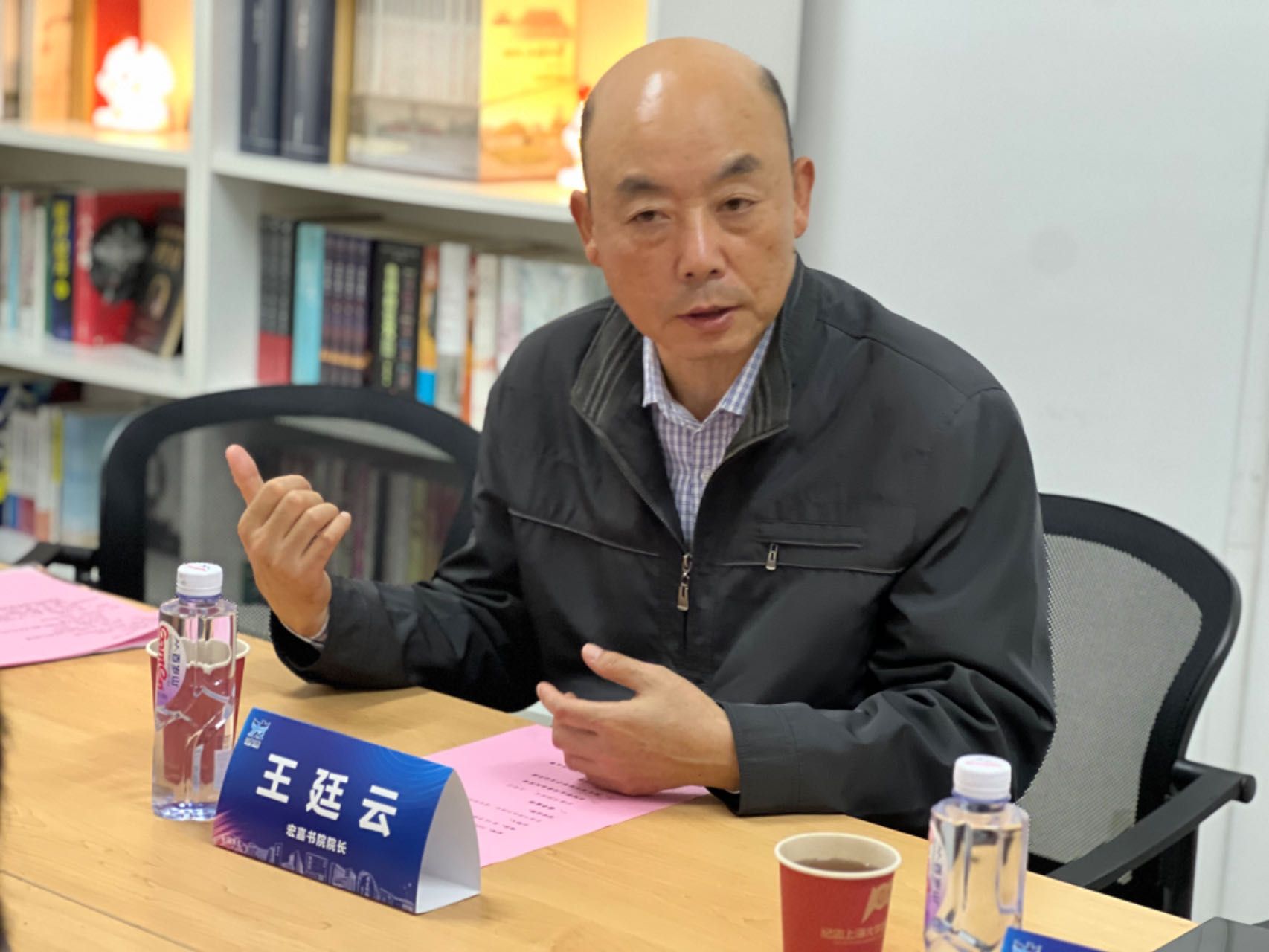 座谈会开始,宏嘉书院执行院长陈涛为同学们简要介绍了本次活动举办的背景。他说,宏嘉书院成立至今已有一年,无论是学风建设还是学术研究都取得了一定的成果。为了更好地倾听宏嘉学子的声音,了解大家的需求,书院院长王廷云老师专程走近书院空间与同学们近距离面对面交流,为同学答疑解惑。