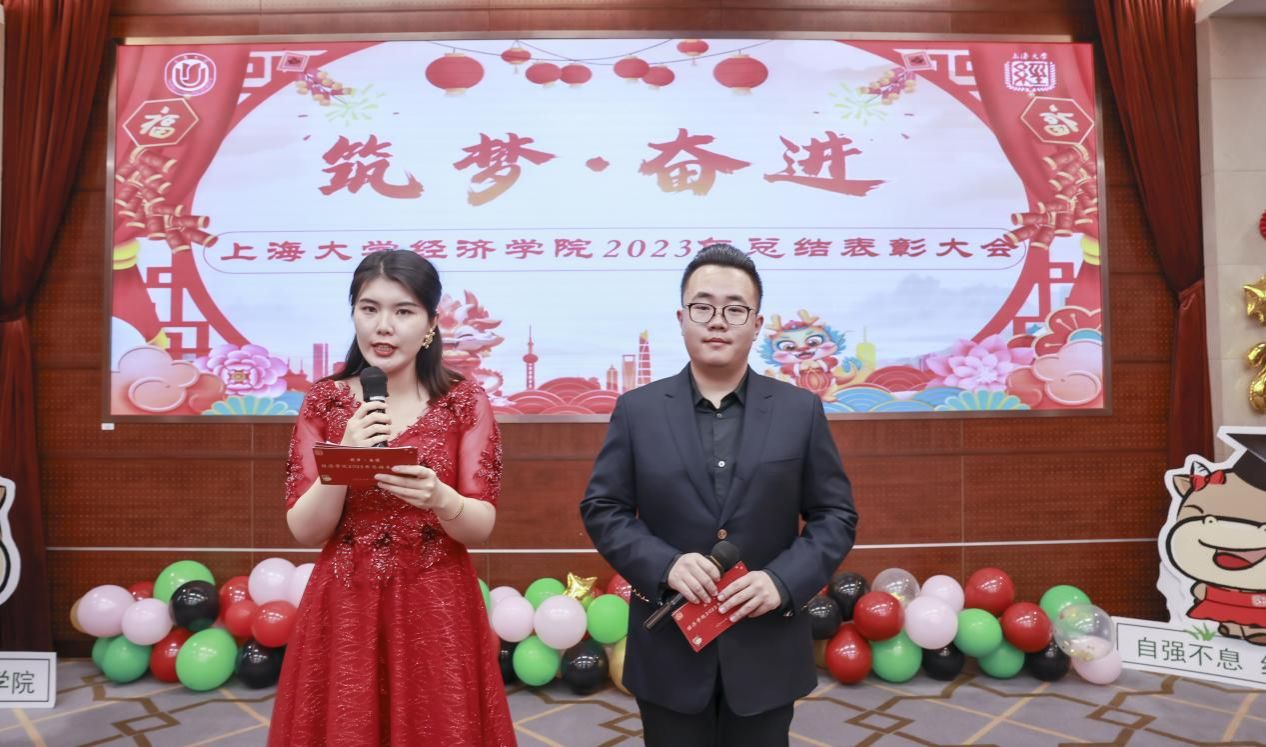 2024年1月19日下午,“筑梦·奋进”经济学院2023年总结表彰大会在宝山校区乐乎新楼思源厅举行。江苏银行上海分行副行长、党委委员周芳英,上海大学经济学院领导班子、经院师生共聚一堂。此次“筑梦·奋进”也是经济学院展现师生昂扬向上、砥砺奋进的精神风貌,展现学生青春风采,凝聚师生奋进力量的活动。