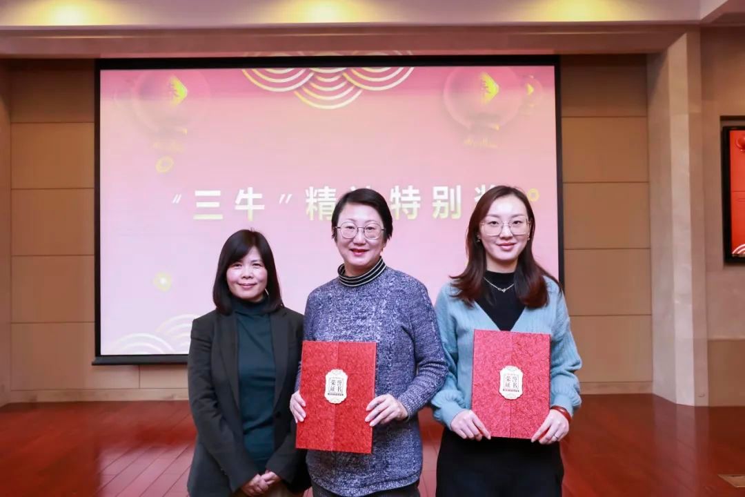 为了贯彻落实习近平总书记的关于发扬孺子牛、拓荒牛、老黄牛的精神,国际部连续三年设立“三牛精神”特别贡献奖项。2023年度,曾艳、彭亚男获得“创新发展拓荒牛”奖项;李慧、刘赛获得“人才培养孺子牛”奖项;陈颖、戎艳获得“勤恳奉献老黄牛”奖项。他们敢为人先,心系学生,踏实敬业,全力为国际部的发展拉犁耕耘、爬坡向前。