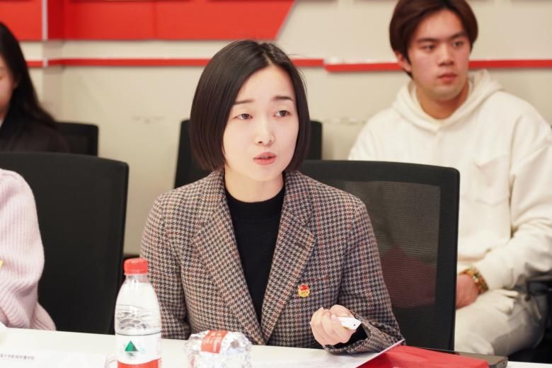 学院团委书记赵琳对学院团委工作进行了系统汇报。她表示,在校团委的坚强领导和院党委的有力指导下,院团委牢牢把握当代青年特点和青年工作规律,构建“凝聚青年、服务大局、当好桥梁、从严治团”四维工作格局,全面加强自身建设,不断创新工作思路,扎实推动团员和青年工作走深走实走心。未来,将继续结合学科专业特色,进一步夯实价值引领,为学生参与学术研究、专业实践打下坚实基础,培养知行合一的传媒新青年。