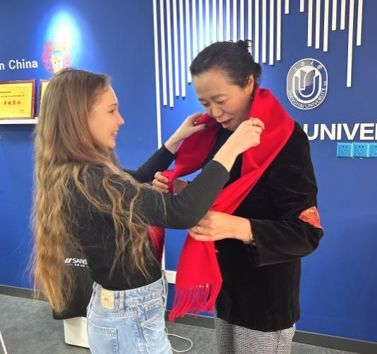 留校国际学生们也对学校领导和老师们的慰问表示感谢,送上了亲手写的福字和红色围巾。虽然同学们身在异乡,却感受到了学校的真切关怀,感受到了家的温暖。