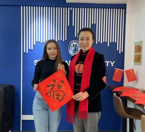 为了让留校过年的国际学生们感受到快乐而浓郁的新年氛围,国际教育学院组织留校国际学生一起迎新春、送祝福。来自泰国、印度尼西亚、阿塞拜疆、乌兹别克斯坦、俄罗斯、孟加拉、乌克兰、巴基斯坦等国的国际学生相聚一堂,一起写福字、做花灯、聊家常,体验中国式过年。上海大学副校长于雪梅、国际部党委书记王丽娜出席活动,与学生亲切交流。