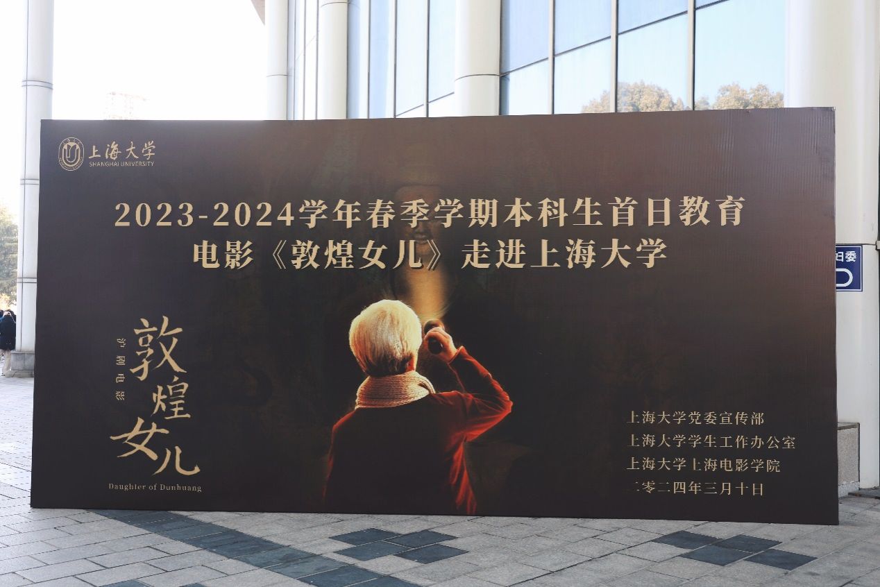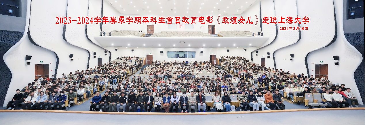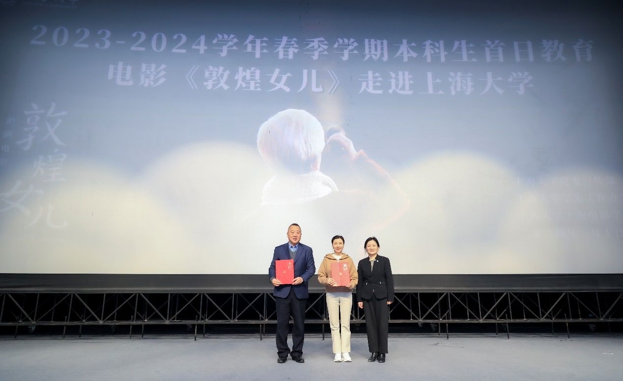 3月的上海大学,春意盎然,繁花似锦,伟长楼剧场内座无虚席,一场美育盛会吸引到了众多师生的参加。3月10日上午,为深入学习贯彻党的二十大精神,落实学校本科人才培养目标,坚持以美育人、以文化人,以美育浸润学生,上海大学党委宣传部、学生工作办公室(武装部)、上海电影学院联合组织并举办了“《敦煌女儿》放映会暨主创交流会”,旨在通过戏曲电影艺术的形式,弘扬“莫高精神”,致敬敦煌女儿——樊锦诗先生,并将敦煌文化的博大精深带给全校师生。