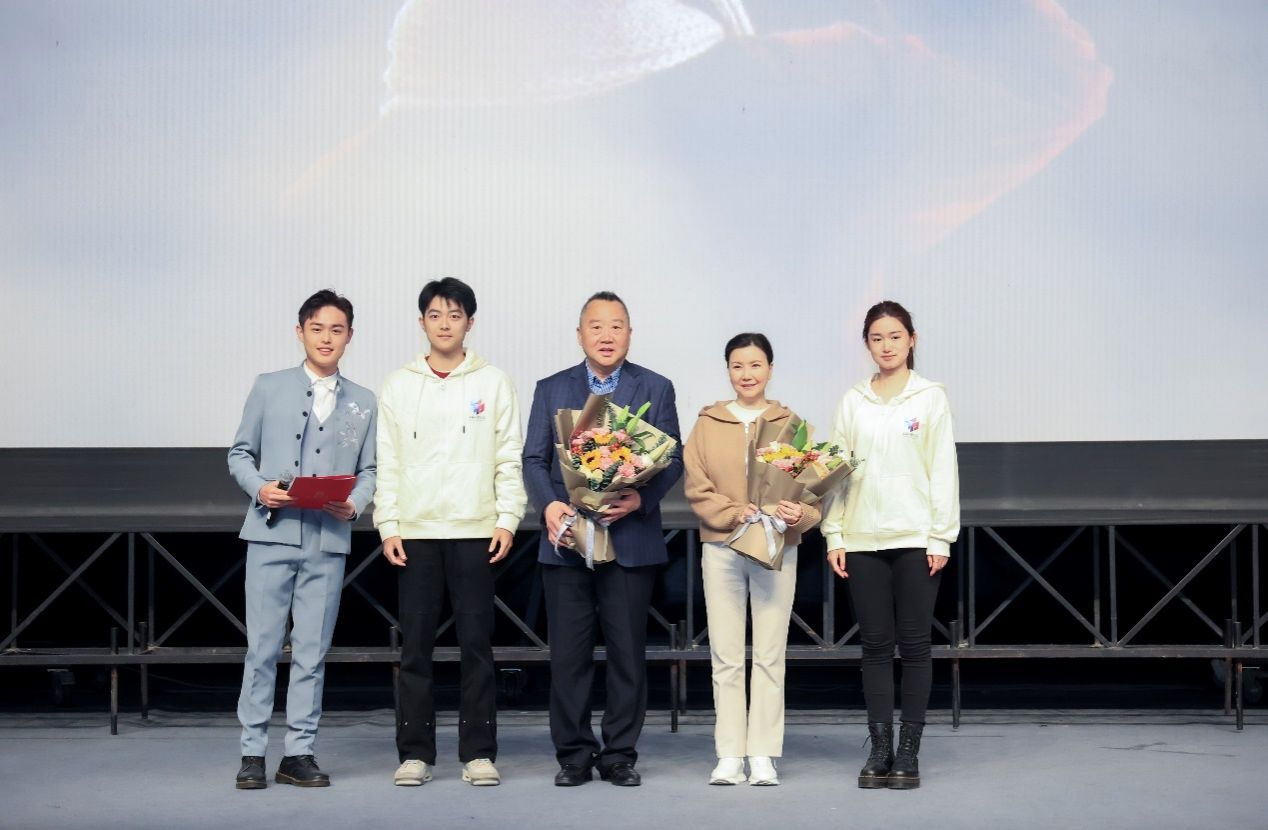 两位艺术家对在场师生的支持表示感谢,希望大家能从电影中感受到人性之光辉和传统文化的魅力,这让在场的每一位师生都深受感动。随后,上海电影学院学生代表上台献花,向主创人员回以敬意和感谢。