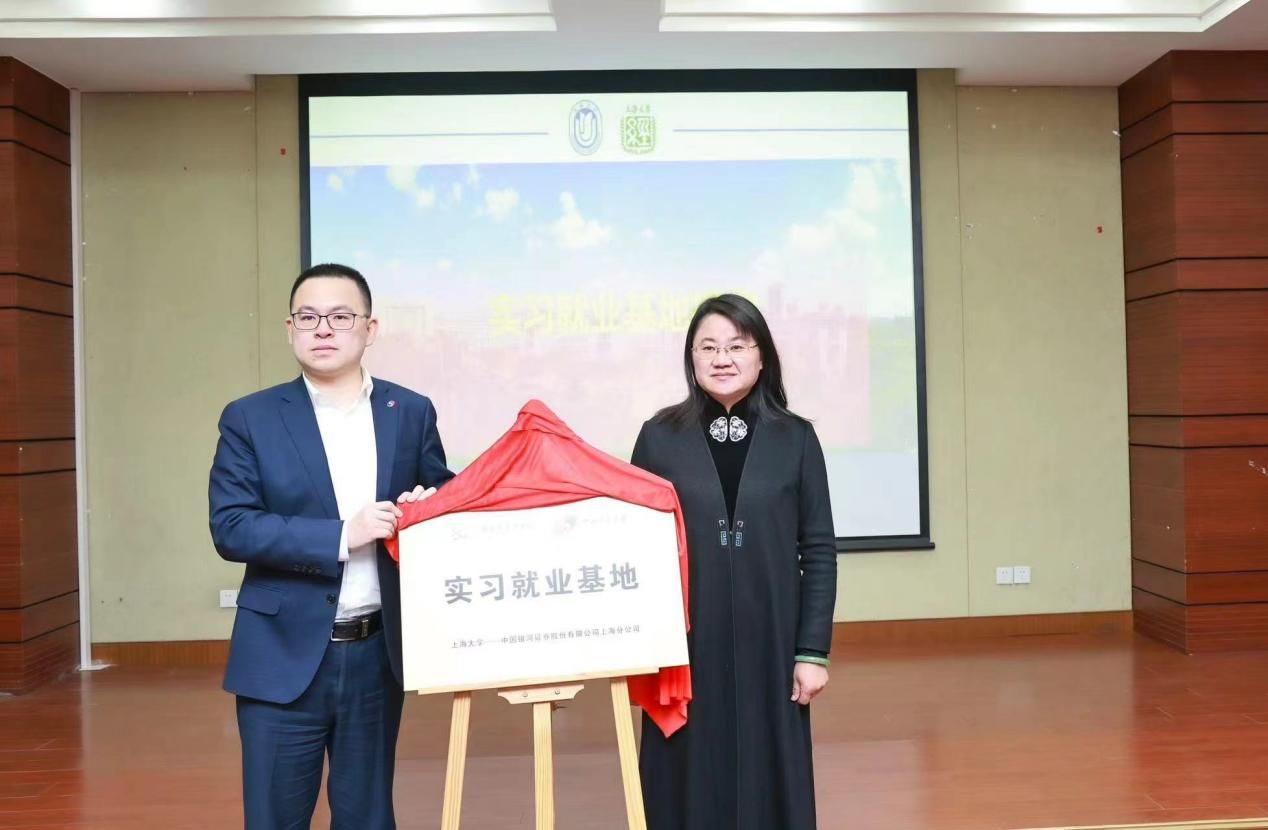 随后殷凤院长和田旻总经理进行上海大学与中国银河证券股份有限公司上海分公司合作签约仪式并为实习就业基地揭牌,殷院长还送上从档案馆复印的田旻学长毕业论文成绩评定书作为留念。