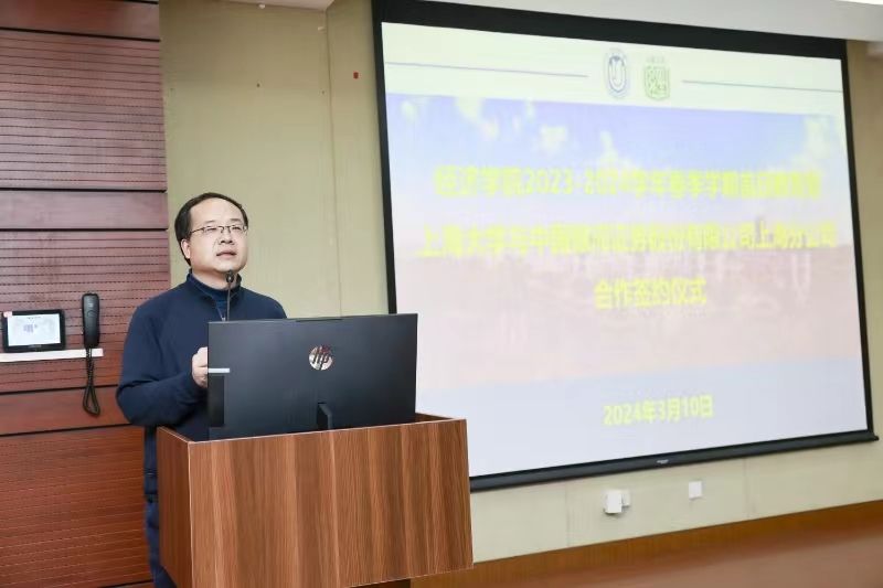 3月10日下午,经济学院2023-2024学年春季学期首日教育暨上海大学与中国银河证券股份有限公司上海分公司合作签约仪式在经管楼蔡冠深讲堂举行。中国银河证券上海分公司党委书记、总经理、上海大学2003届金融系校友田旻,中国银河证券上海源深路营业部总经理顾康康,中国银河证券上海淞沪路营业部总经理励亚君,经济学院党委副书记、常务副院长殷凤,学院团委书记黄婉璐,学院实验室主任王晓磊,辅导员孙冰等出席活动。活动由经济学院党委副书记、副院长冯玉鑫主持。