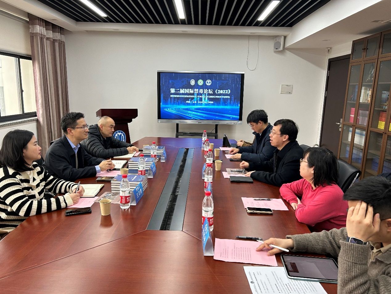 2024年3月18日下午,上海市禁毒委员会办公室主任周国庆、上海市委政法委毒品预防处处长董立武、干部王灵慧莅临上海大学国际禁毒政策研究中心指导工作。