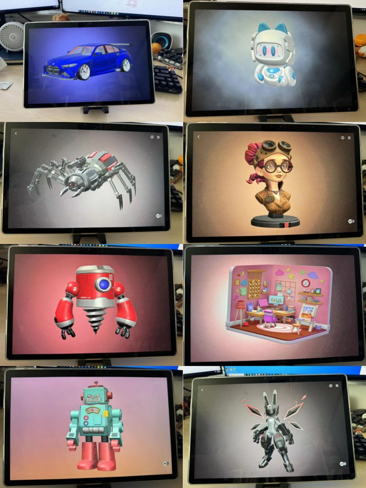 去年年底,中兴公司代表在访问温影时,对3D系师生的作品表示高度认可,表达了与温影加强产业合作的强烈意愿,希望将3D系学子的作品内嵌到新一代裸眼3D平板上,带到MWC24展示。3D系的Panzer和Toka老师,带领学生在之后的几个月里,不断打磨并调整模型作品,实时与中兴技术人员沟通,以适应裸眼3D屏,达到最佳显示效果。