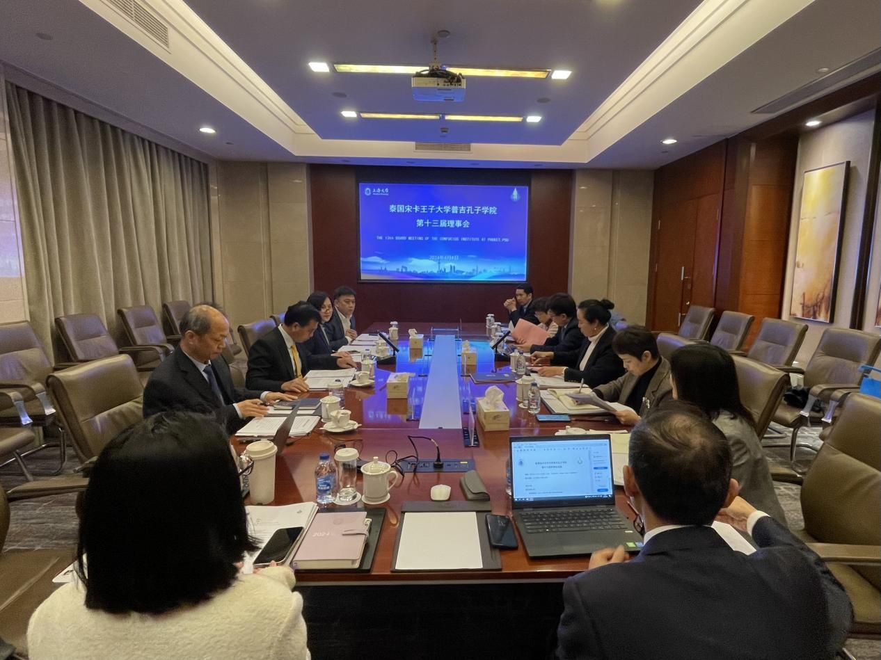 4月8日,泰国宋卡王子大学普吉孔子学院第十三届理事会在上海大学顺利召开。上海大学副校长、普吉孔院理事会中方理事长于雪梅,宋卡王子大学副校长、普吉孔子学院理事会泰方理事长林朋(Dr. Pun Thongchumnum)共同出席了本次会议,会议由孔子学院办公室主任徐晓红主持。