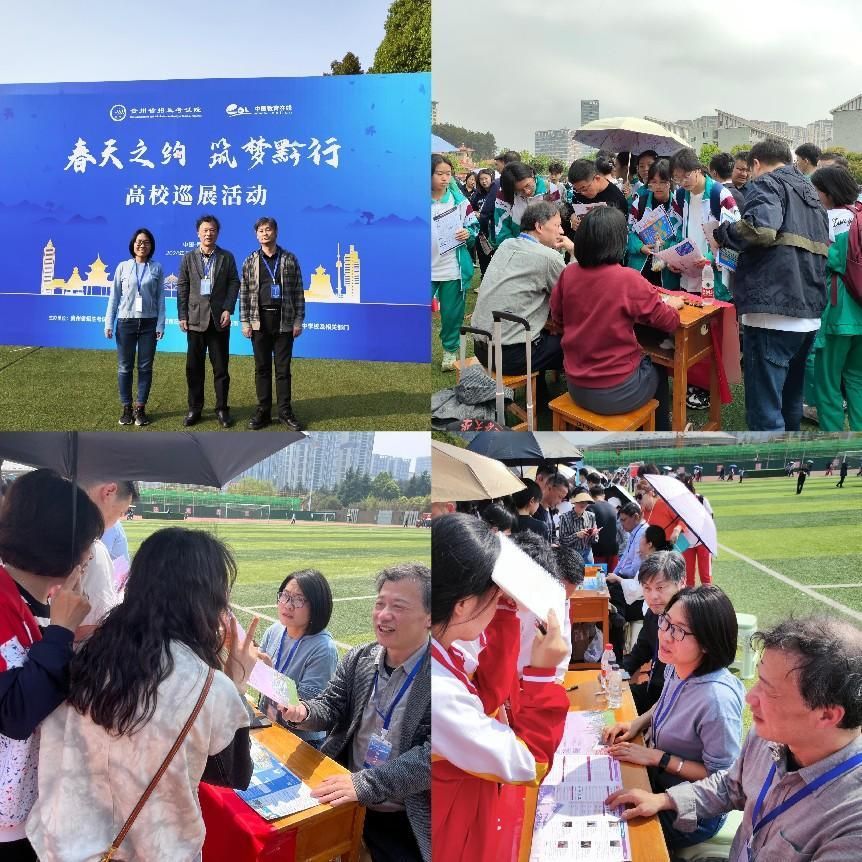 面对2024年贵州新高考改革将全面落地的新形势,为了更好帮助贵州考生和家长了解上海大学、报考上海大学,4月12-13日,上海大学贵州招宣组(法学院)在学校招生就业处的指导下,联合里斯本学院、悉商学院、钱伟长学院组建4支招宣小分队分别前往贵阳市第一中学、贵阳市第三实验中学、贵阳市清华中学、贵阳市第六中学以及遵义四中开展招生宣传活动,为黔贵考生和家长提供面对面的个性化咨询服务。