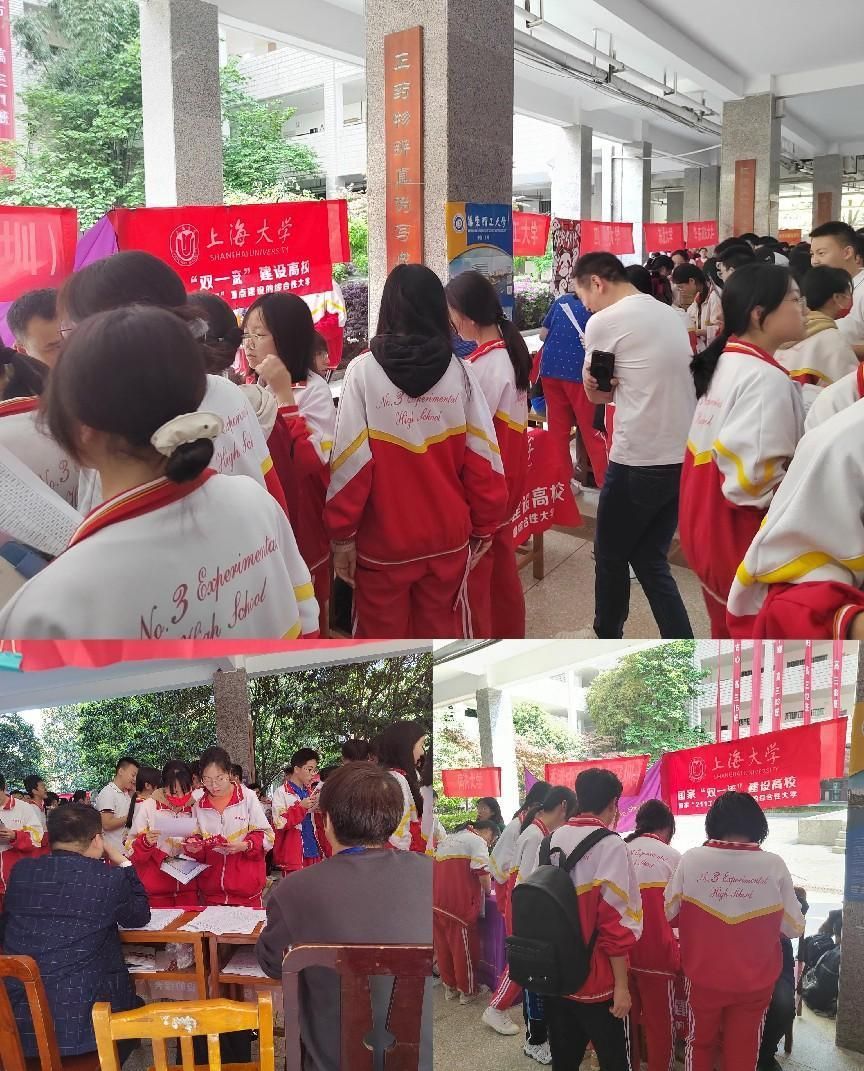 上海大学贵州招宣组副组长于伟、钱伟长学院招生负责老师魏仲奇、贵州招宣组成员王琦前往贵阳市第三实验中学开展招生咨询活动。考生和家长就新高考改革下的专业填报、录取排位、保研就业等问题进行详细询问,招宣组老师耐心细致给予回答,让考生和家长对上海大学有了更全面和深入的了解。
