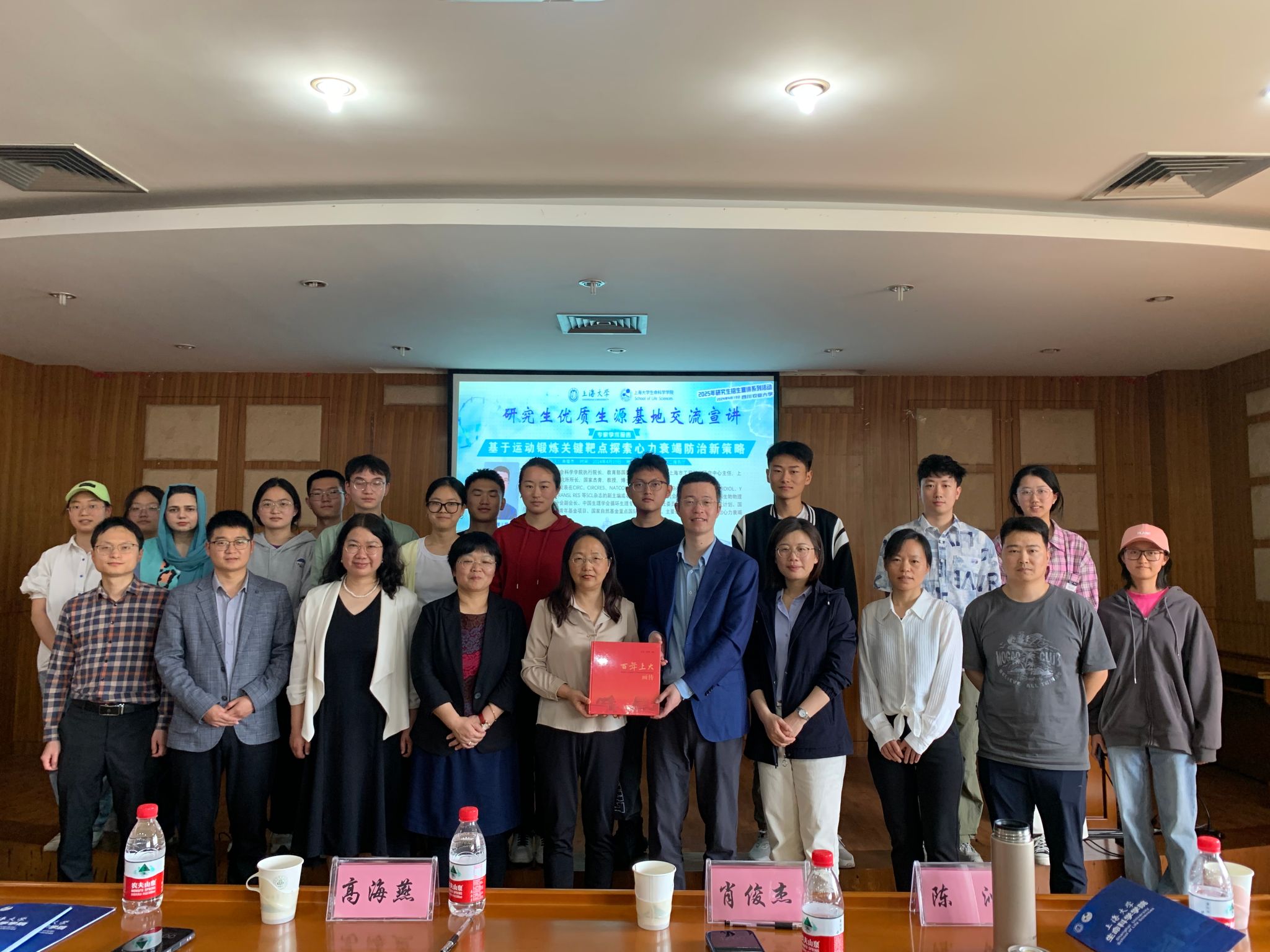 为进一步提升研究生招生质量,拓展研究生招生渠道,促进与兄弟院校之间的合作交流,4月18日至19日,上海大学研究生院招生办公室主任陈沁,生命科学学院执行院长肖俊杰,生命科学学院研究生教学院长高海燕,生命科学学院党委副书记、副院长朱晓青,研究生教学秘书董海燕一行赴四川农业大学进行学术交流与研究生招生宣讲。四川农业大学食品学院党委书记秦文,本科教学院长张清,食品营养与健康系系主任陈洪,学院党委副书记汤瑞瑞,学院党委办公室主任胡敏伦,生命科学学院副院长刘贺贺,及食品学院、生命科学学院、体育学院众多师生参加交流活动。
