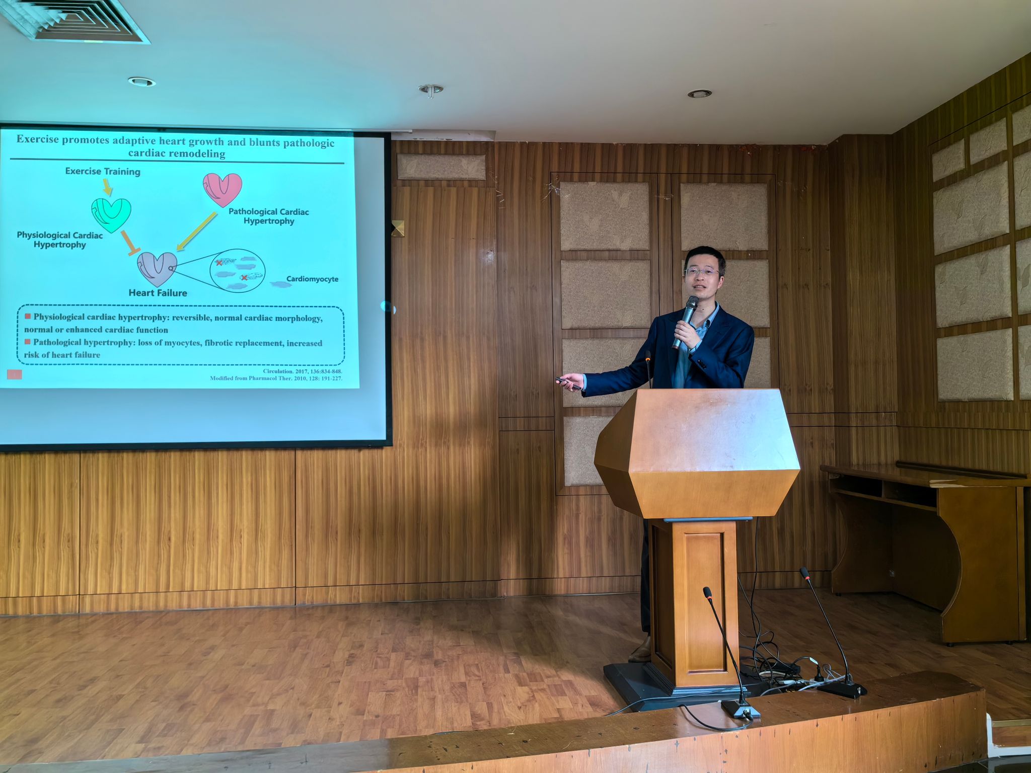 四川农业大学食品学院党委书记秦文首先对肖俊杰一行的来访表示了热烈的欢迎,希望以此活动为契机,两校相关学科之间能够围绕学术科研、人才培养等方面开展交流合作,尤其是加大优秀人才培养力度。接着,肖俊杰教授做了题为“基于运动锻炼关键靶点探索心力衰竭防止新策略”的学术报告,肖老师以深入浅出、风趣幽默的方式介绍了课题组的最新科研成果,给所有现场师生们在科研工作的研究思路与方法方面以启发,激发同学们对于深造的浓厚兴趣。