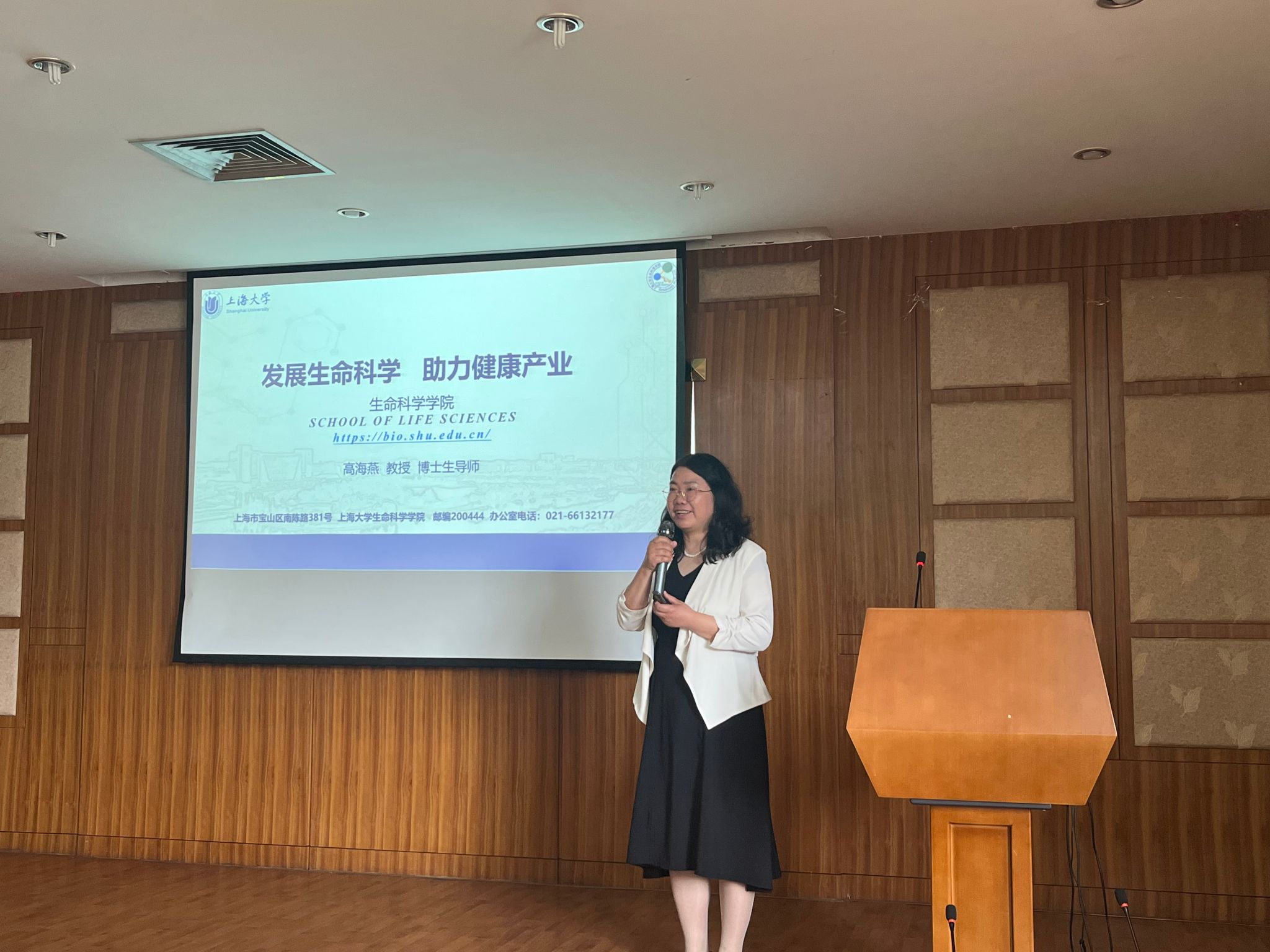 随后,陈沁教授给参加的同学们从校史、学科建设、师资力量、校园环境等方面介绍了上海大学的概况,着重介绍了上海大学研究生招生政策和培养情况,让在座的同学对上海大学的研究生教育有了初步的印象,并欢迎四川农业大学的优秀学生报考我校研究生;高海燕教授围绕生命科学学院的科研实力、平台建设、研究生培养成效等做了详细介绍,同时为学院即将举办的夏令营、国际会议论坛等,向四川农业大学的学生发出了诚挚的邀请,并明确指出我校针对推免生的优惠政策以及学院对于四川农业大学学生参加我院夏令营的政策。