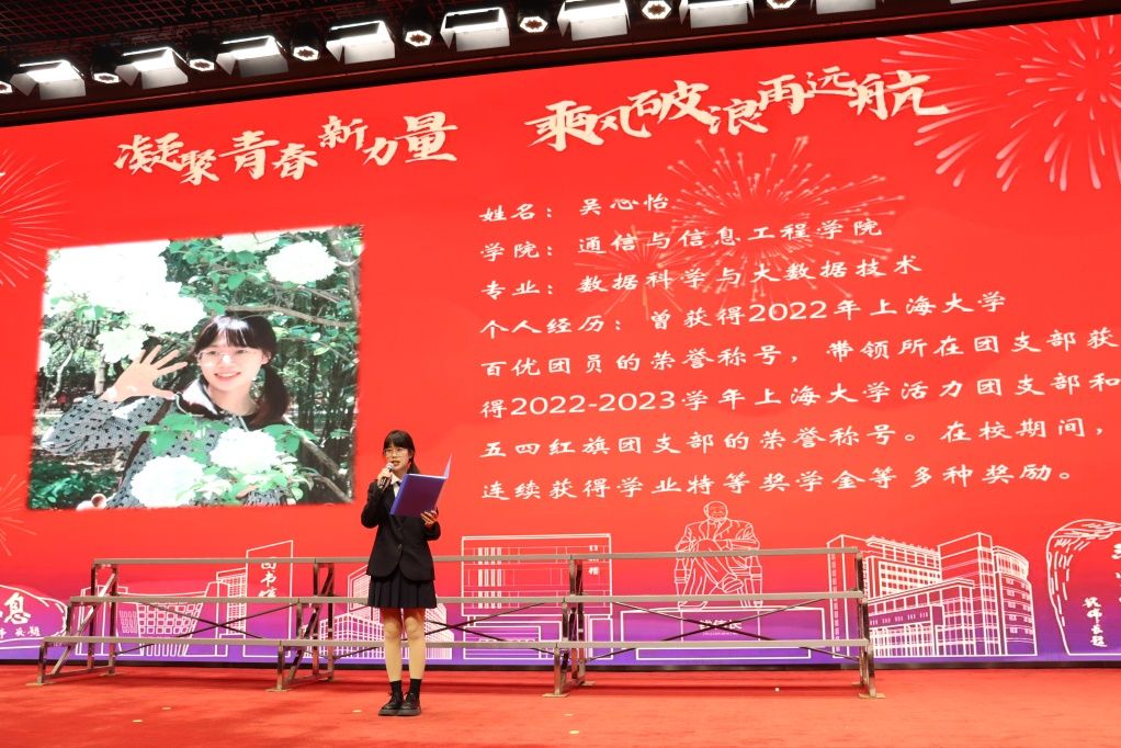 为进一步深入学习和贯彻党的二十大精神,动员引领广大团员和青年在强国建设、民族复兴伟业中发挥力量,4月19日晚,“凝聚青春新力量,乘风破浪再远航”庆祝新中国成立75周年、上海大学新合并组建30周年暨第十四届上海大学宏嘉书院五四班团风采展示晚会在宝山校区图报厅举行。上海大学学生工作办公室主任、武装部部长、本科生书院管理中心主任孟祥栋,上海大学校团委副书记姜晓庆,宏嘉书院执行院长、通信学院党委副书记、副院长陈涛,计算机学院党委副书记、副院长赖练,宏嘉书院各班主任代表、辅导员代表、四百余名学生等共同参与这场青春盛会。晚会由宏嘉书院学子邱皓镧、张烁星、季骏、宋子渌共同主持。