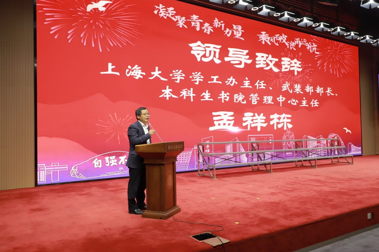上海大学学生工作办公室主任、武装部部长、本科生书院管理中心主任孟祥栋为活动致开幕词,他讲到,班级是大学生进行自我认知与成长发展的重要纽带,学子们的积极参与体现了对书院班集体的认可,寄语学子们要带着上大青年人、宏嘉青年人的锐气、朝气与大气,在上海大学新合并组建30周年之际,在科技创新、追求卓越的道路上继续砥砺前行。