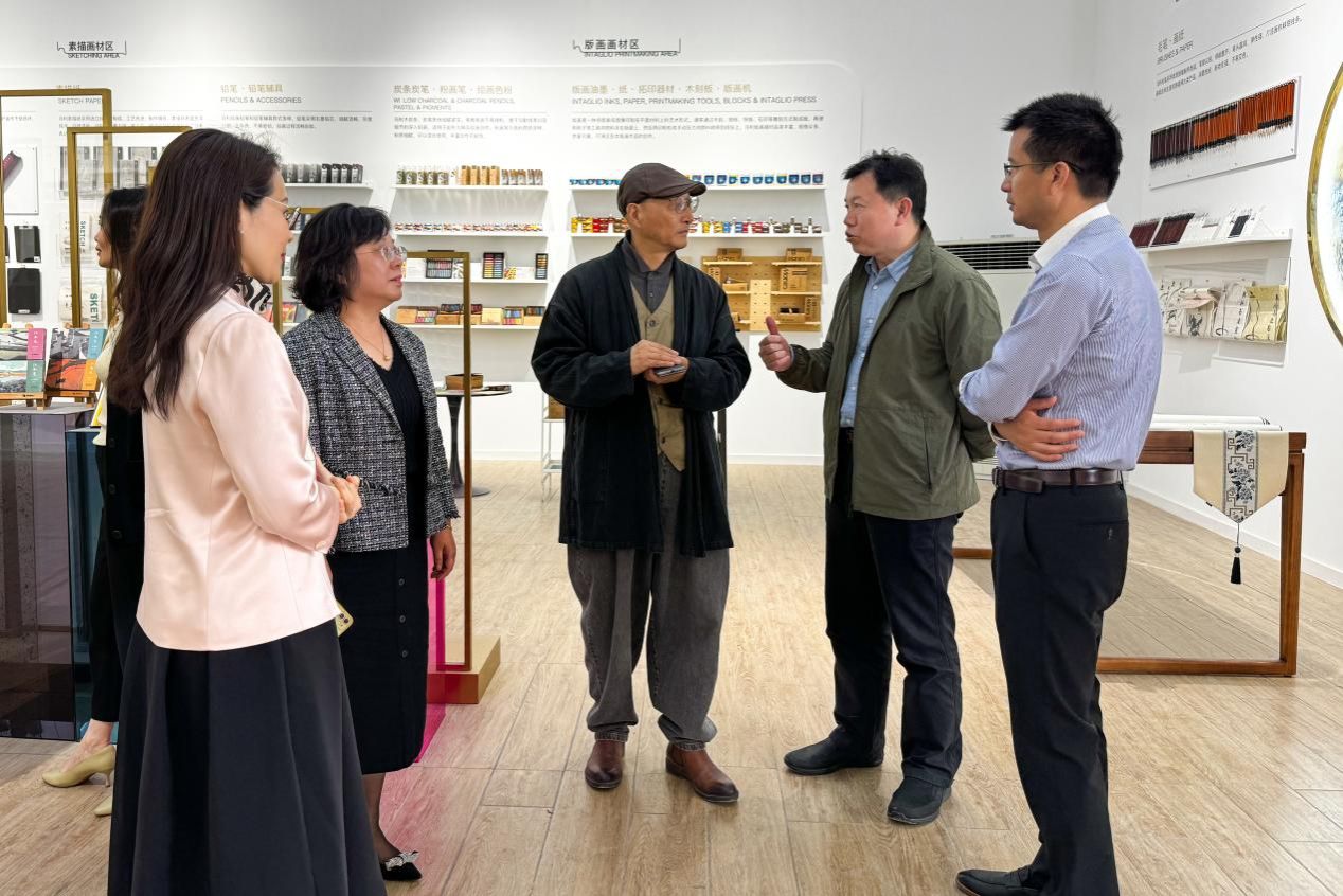 为充分发挥校企党建合力,推进党建与学院业务互融互促,进一步创新产教融合合作模式,深化校企协同育人,推进学院毕业生高质量就业,4月24日,上海大学上海美术学院党委书记陈静,院长曾成钢,党委副书记、纪委书记宋国栓,党委副书记、副院长曹俊,副院长章莉莉,党政工作中心副主任牛晨光,设计系副主任(主持工作) 杜守帅,设计系副教授王蒙一行赴上海马利画材有限公司走访调研。马利股份党支部书记、董事长蒋熙洲,党支部副书记、总经理闫加伟,董事会秘书王青青,综合办主任陈雨平等参加调研。