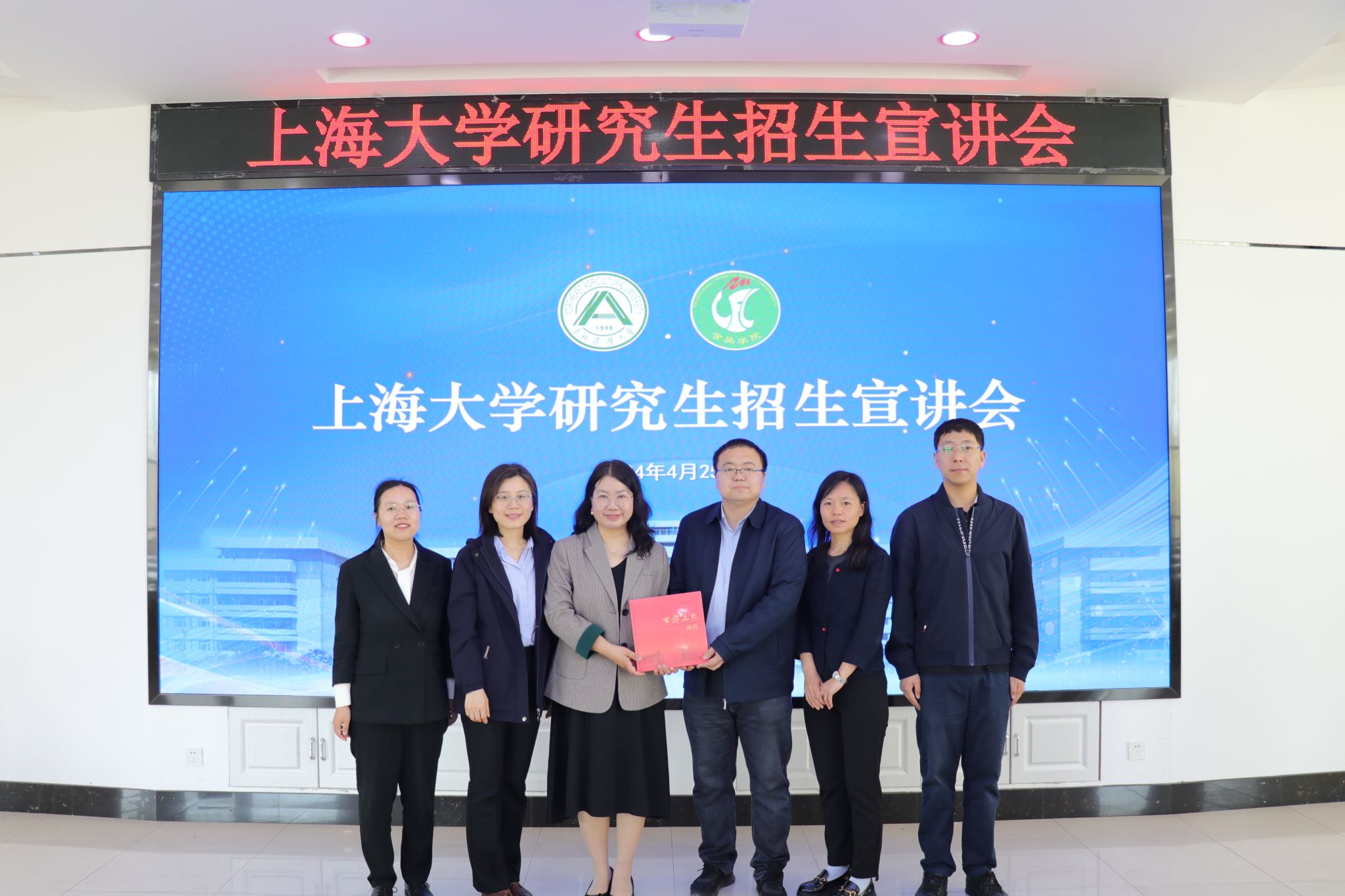 随后,高海燕教授向同学们介绍了上海大学的概况、学院的学科建设、师资力量、科研平台、招生政策、研究生就业等广大学子们最为关心的话题,欢迎东北农业大学优秀学子积极报考我校我院推免生、统考生等。最后,高海燕教授代表我院向东北农业大学食品学院赠予了“百年上大”画册。