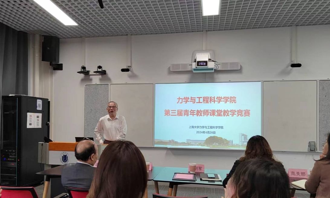 为进一步锻炼青年教师教学基本功、加强师德师风建设,庆祝上海市应用数学和力学研究所40周年,4月26日上午,上海大学力学与工程科学学院在土木楼404会议室举办了学院第三届青年教师课堂教学竞赛。学校教务部副部长辛明军作为特邀嘉宾出席,学院副院长任重主持,力学系和土木工程系6位青年教师参赛讲课。竞赛邀请了第六届全国高校青年教师教学竞赛工科组一等奖(第1名)获得者上海交通大学高晓沨教授,上海第二工业大学数理与统计学院副院长高美娜教授,力学与工程科学学院张俊乾教授、秦爱芳教授、宋亦诚教授担任专家评审,10名学院本科生担任学生评审。