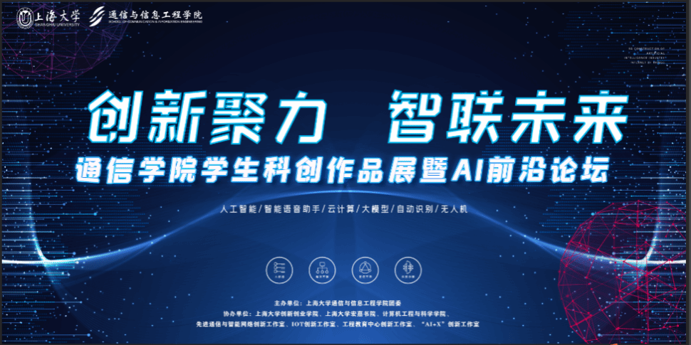 为纪念上海大学建校102周年庆祝上海大学新合并组建30周年,5月10日,上海大学通信与信息工程学院团委携手上海大学创新创业学院、宏嘉书院、计算机工程与科学学院、通信与信息工程学院研究生会、宏嘉书院“领航”职业生涯教育工作室,以及先进通信与智能网络创新工作室、IOT创新工作室、工程教育中心创新工作室、“AI+X”创新工作室等多方力量,在翔英大楼举办了“创新聚力·智联未来——通信学院学生科创作品展暨AI前沿论坛”。