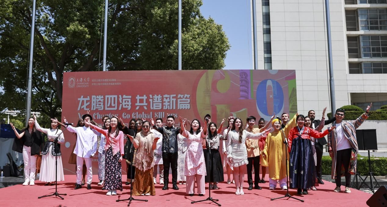 开幕式中,上海大学国际学生海翼合唱团为观众带来合唱表演《同一首歌》。来自世界各地的国际学生们用歌声表达了对上海大学的美好祝福。