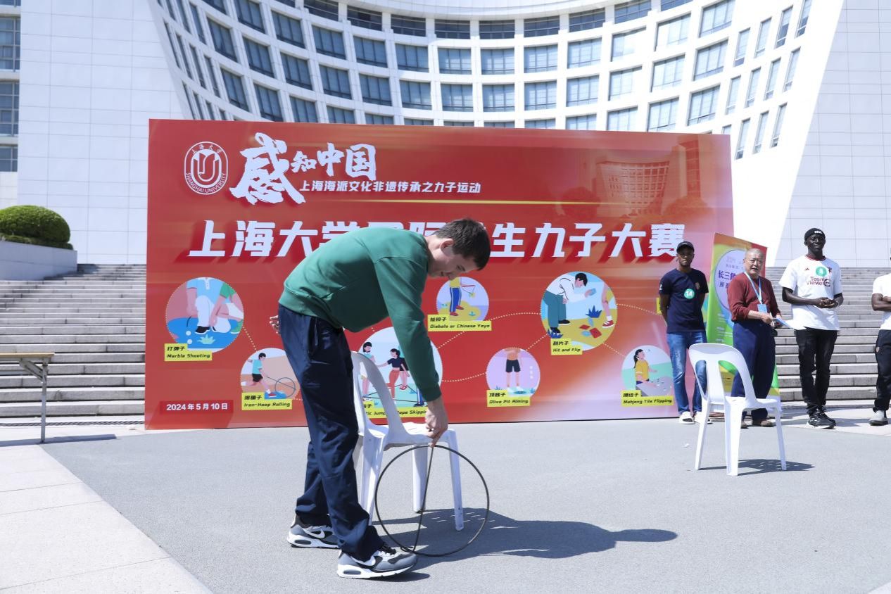 此外,“感知中国”系列活动之一,2024上海大学国际学生“九子大赛”预赛也乘本次文化节之势火热开展。国际学生体验到了老上海弄堂游戏的魅力,拉近了他们与中国传统文化的距离。