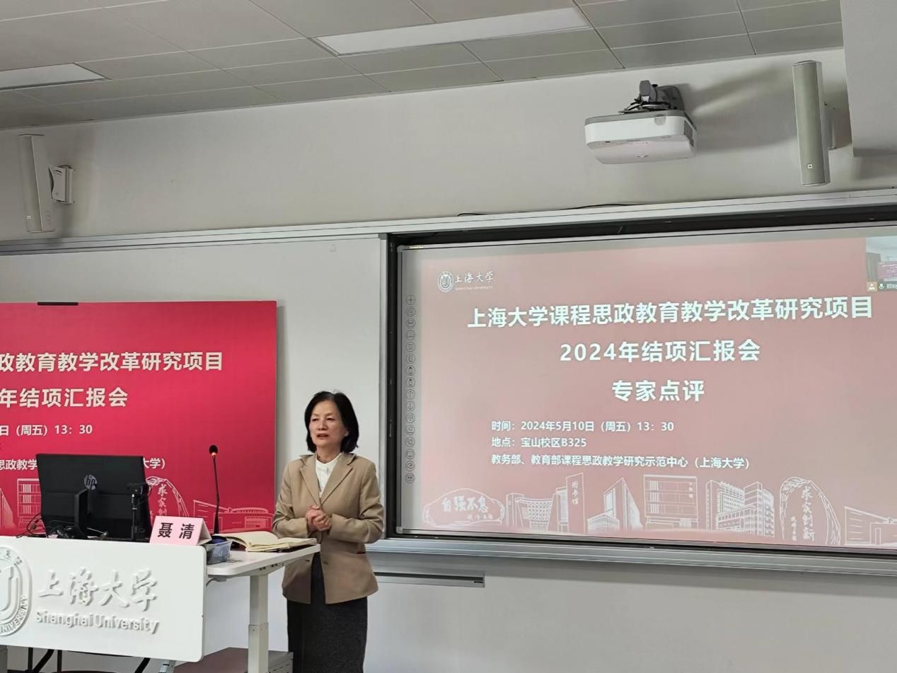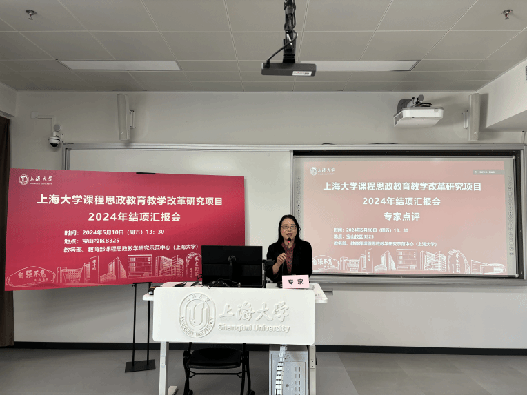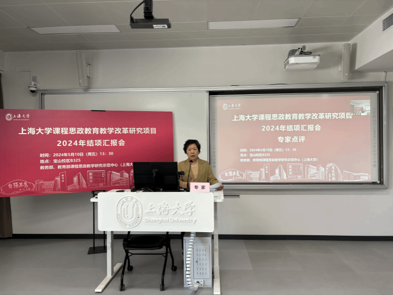 5月10日,上海大学于宝山校区B325举行2024年课程思政教育教学改革研究项目结项汇报会。校党委常委、副校长聂清与会并致辞。教务部副部长、课程思政教学研究中心负责人顾晓英教授担任主持。数十名来自各学院的教师线上线下观摩。